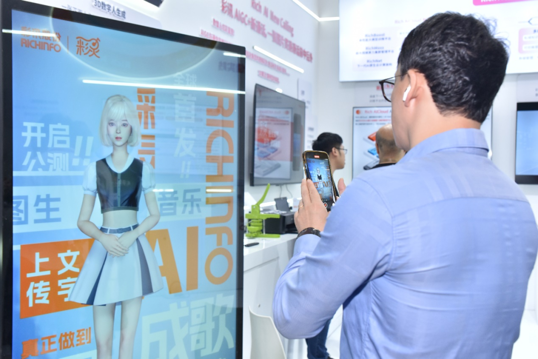 大会举办首日,彩讯股份图生音乐AI应用“彩灵”全球首发并开启公测,吸引众多嘉宾前来体验。彩灵是基于新一代多模态大模型技术,构建的AI音乐生成产品。用户只需上传任意一张照片或输入一段文字,即可一键生成一首专属歌曲。也可以编辑/选择自己喜欢的歌名、歌词、歌手、音乐风格等,个性化创作歌曲。