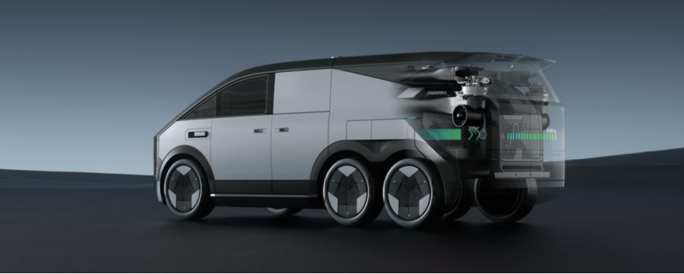 “陆地航母”分为陆行体和飞行体两部分,陆行体又被称作陆行“母舰”,采用三轴六轮设计,可实现6×6全轮驱动及后轮转向,具备较好的承载能力和越野能力。陆行“母舰”克服前所未有的工程设计难度,打造出全球唯一能装下“飞机”的汽车后备舱,并且仍然能提供宽敞舒适的车内大四座乘坐空间。