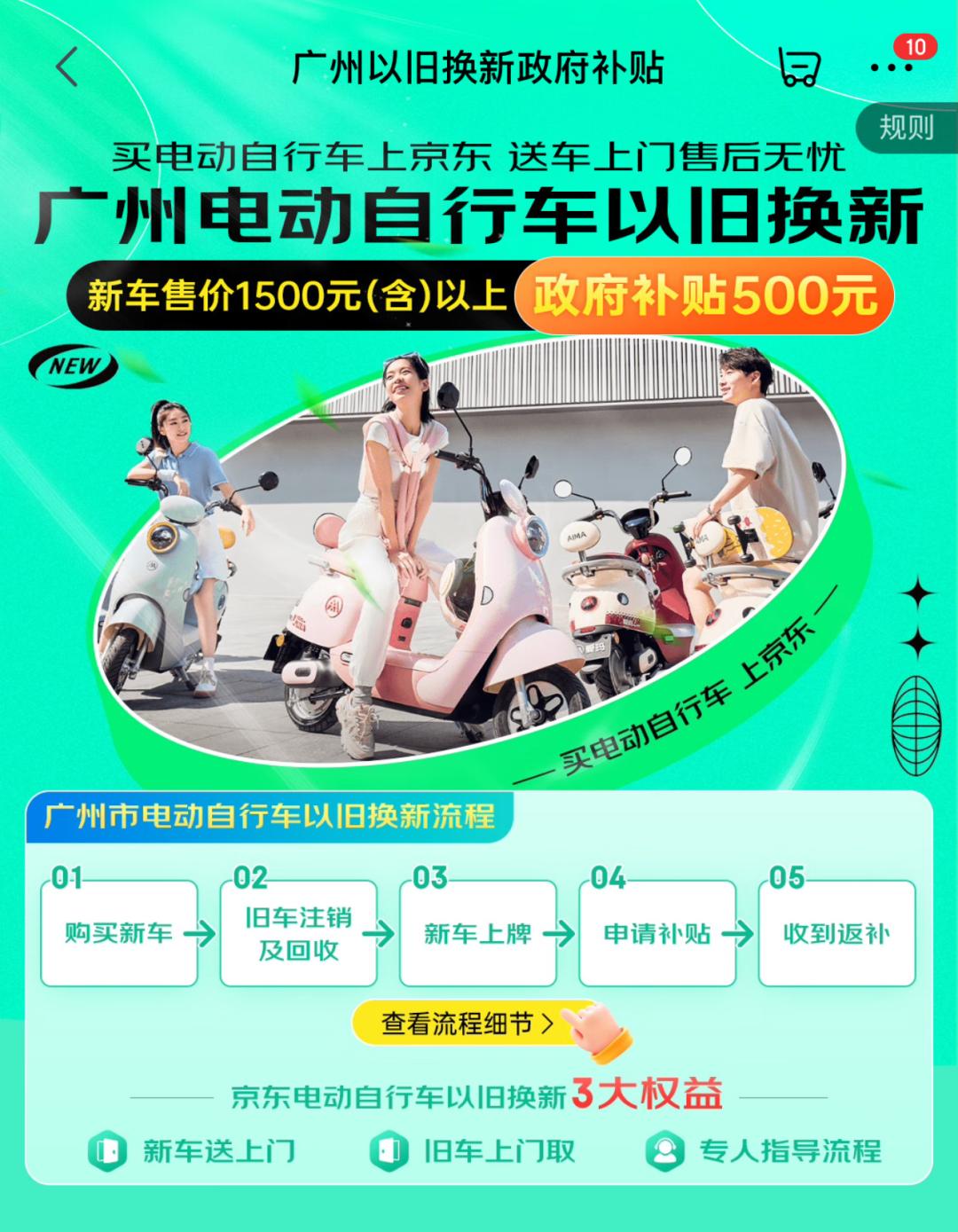 此次11.11,京东汽车为广州电动自行车以旧换新“加码”。据了解,本地消费者在京东购买支持以旧换新的电动自行车,一方面能得到平台提供的至高232元的“折旧价”,假如购买的商品价格在1500元及以上,还能额外申请获得广州政府提供的500元补贴。