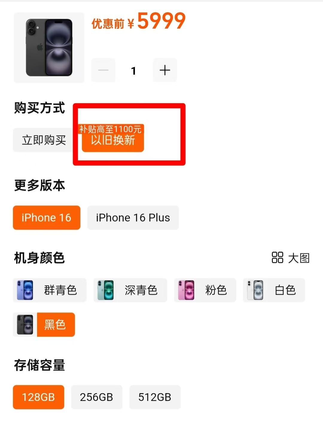 除了天猫外,在京东、拼多多等平台,iPhone 16系列也有立减500元等不同程度的优惠,也有平台以旧换新的额外补贴最高可达1111元。
