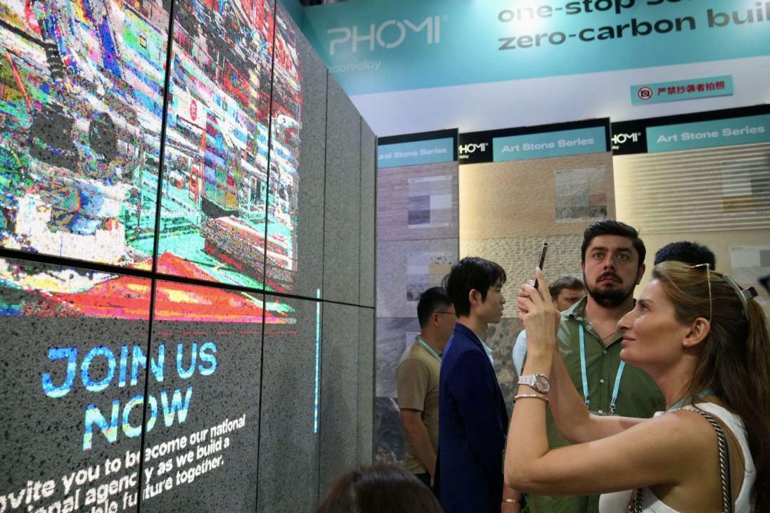 “这真的不是投影吗?”“这个是作为内墙还是外墙呀?”广西福美新材料有限公司展位上,不少外国采购商看到一个正在“播放”视频的墙体后不禁发问。