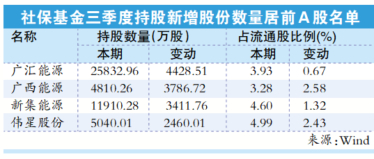 记者留意到,三季度社保基金重点加仓能源、公共事业等领域的公司,大消费、制造业等方向也受到关注。在持仓的563家上市公司中,共有174家公司在三季度获得社保基金的增持,占比30.91%。其中,共有23只个股获社保基金增持超千万股。广汇能源三季度获增持4428.51万股居首,广西能源、新集能源紧随其后,分别获增持3786.72万股、3411.76万股。