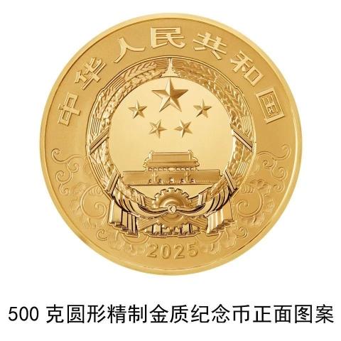 500克圆形金质纪念币为精制币,含纯金500克,直径80毫米,面额5000元,成色99.9%,最大发行量500枚。
