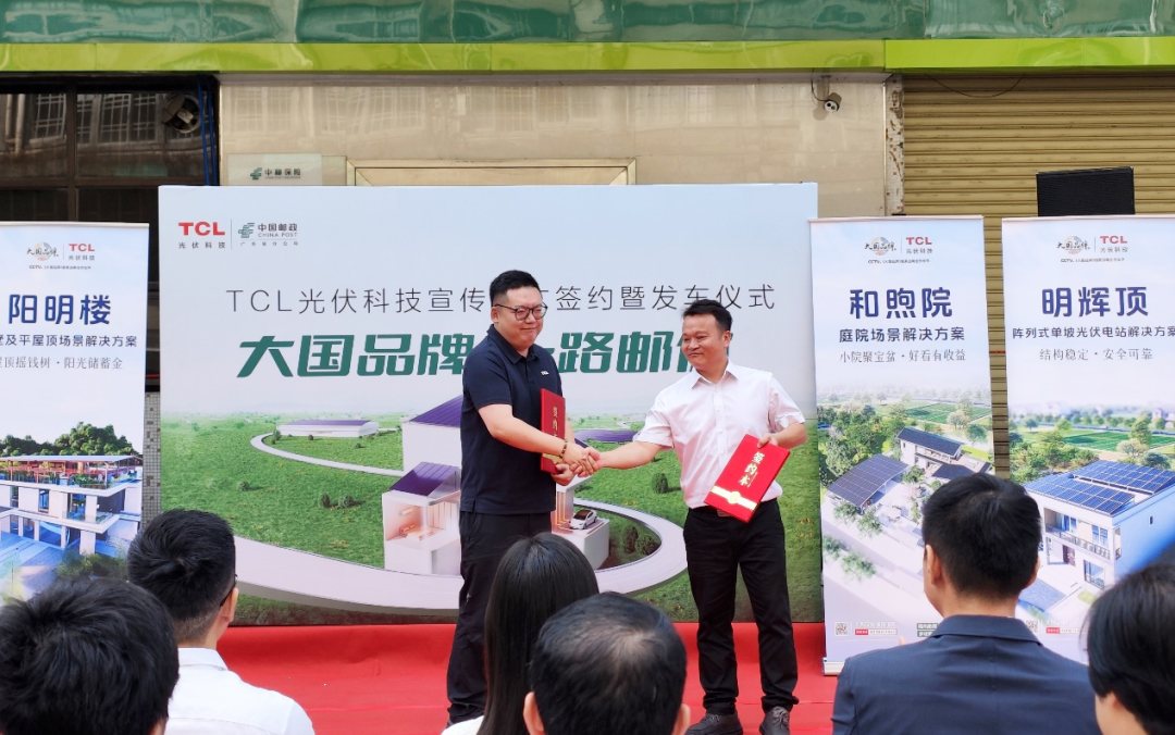 11月18日恰逢中国光伏节,TCL光伏科技与邮政代表于当天举行了“大国品牌,一路邮你”发车仪式。启动仪式现场充满光伏与绿色环保元素,彰显出“用中国之光,照亮乡村之路”的活动宗旨。TCL光伏科技华南大区总经理陈琳、TCL光伏科技品牌负责人卢靖尧、邮政代表等双方领导出席了本次仪式。陈琳在致辞时表示,目前TCL光伏科技在广东区域的业务已覆盖21地市及100个县区,户用光伏安装惠及3万多个家庭。中国邮政与TCL光伏科技都是秉持绿色发展理念的企业,双方在广大农村地区都有着深厚根基。希望此次跨界合作,能够为发展注入强大的绿色动力。