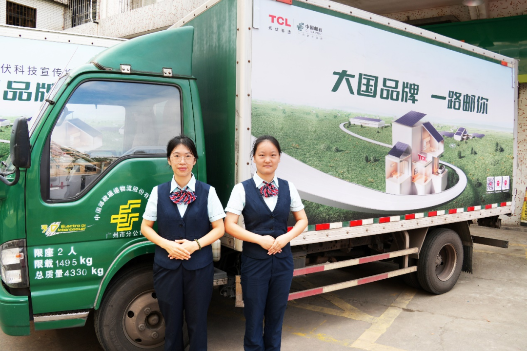 11月18日,广州,6辆绘有“大国品牌,一路邮你”标语的墨绿色邮政货车迎着朝阳,静静地整装待发。它们将驶向广东省内21座城市的乡镇和农村,引领绿色能源理念进入千家万户,并为TCL光伏科技与中国邮政广东省分公司的合作拉开序幕。