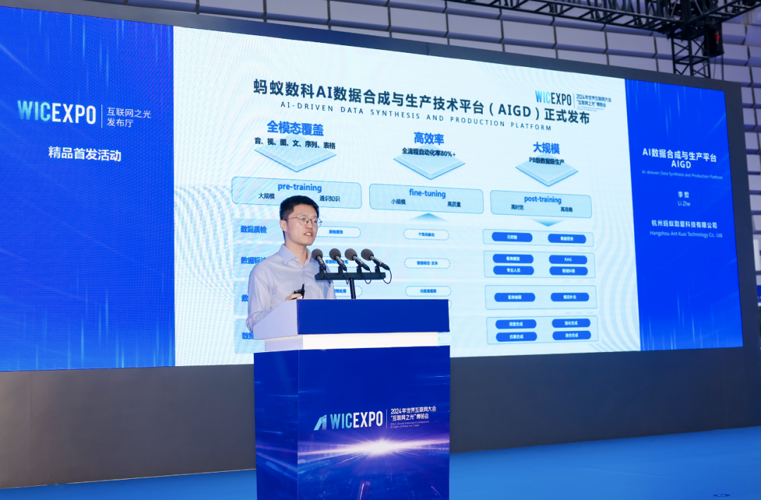 11月19日,行业大模型、具身智能、算力、芯片、数据合成等10项首发成果在乌镇峰会登台路演,其中AI数据合成与生产平台AIGD(AI Generated Data)因聚焦“数据合成”获广泛关注。“未来的AI应用需要大量稀缺且难以获取的长尾数据,如自动驾驶中的极端天气与极端路况数据,具身智能训练所需要的复杂场景数据。在此背景下,数据合成成为关键。”蚂蚁数科AI科技技术负责人、蚂蚁天玑实验室主任李哲现场说道。