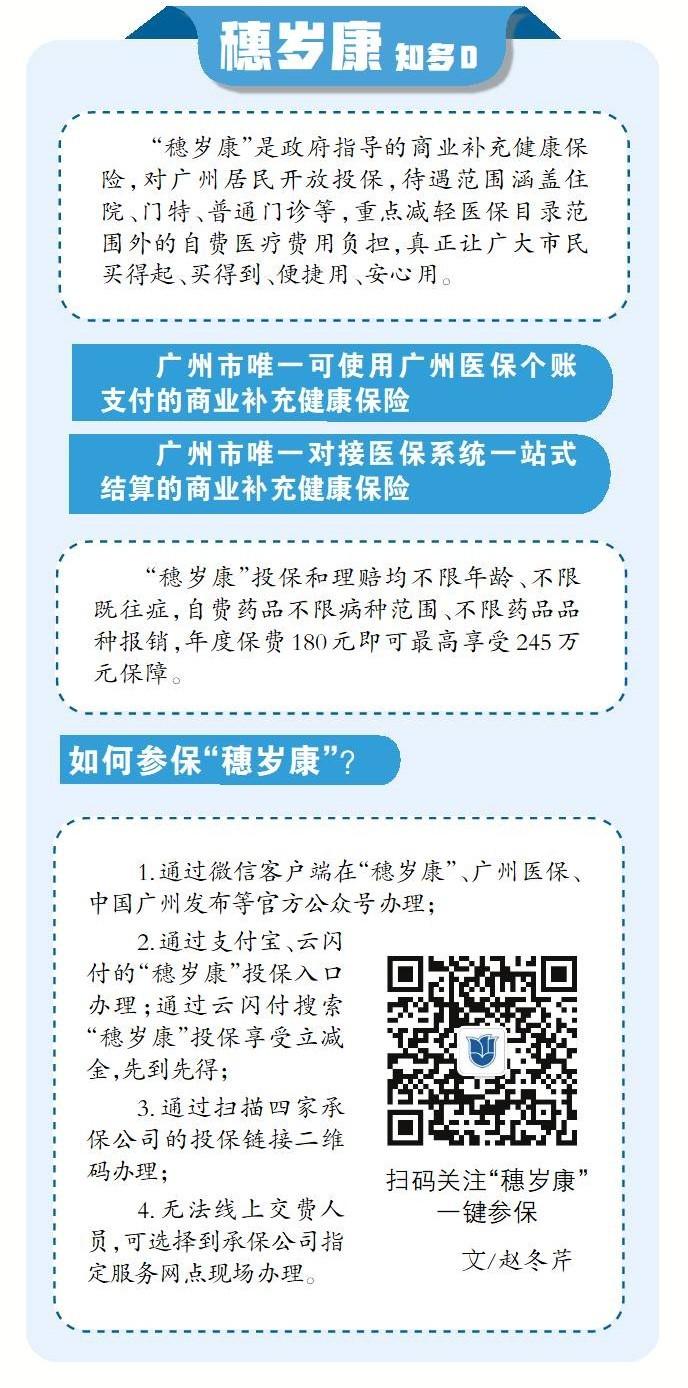 “穗岁康”作为广州市推出的由政府指导、商业运作的商业补充健康保险,通过社会医疗保险和商业健康保险的有效互补衔接,充分发挥商业健康保险在减轻人民群众自费和重大疾病医疗费用负担上的重要作用,进一步促进广州多层次医疗保障体系高质量发展。