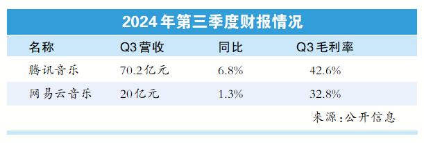 今年第三季度,网易云音乐的净收入为20亿元,同比增加1.3%。毛利率达到32.8%,较上一季度的32.1%和上年同期的27.2%有所增长,网易云音乐称主要得益于会员订阅收入的增加和成本管控的持续改善。