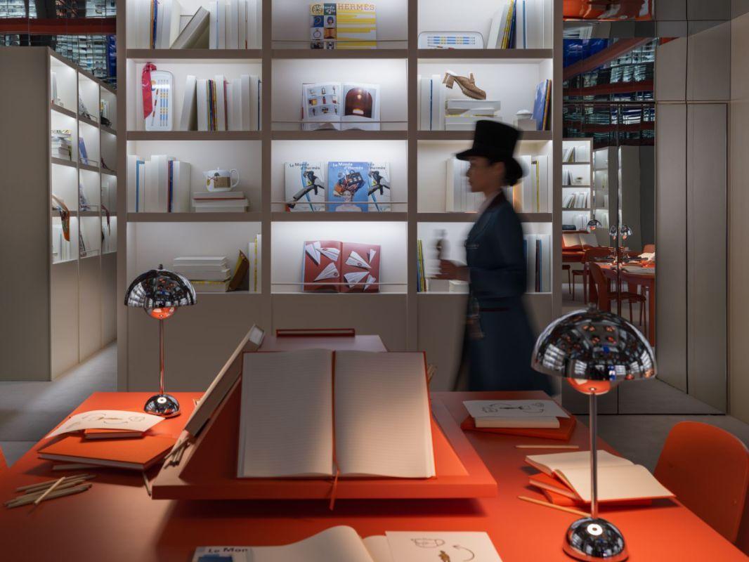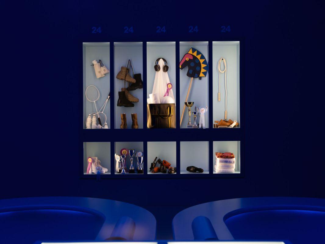 在这过程当中,充盈奇思妙想的独特爱马仕物件此番成为这场轻快体验的焦点。这些公开或隐藏的物件,无不提示着来者破解谜题的关键。比如一则小贴士,你可以机智地通过找到物件上或清晰、或隐晦的马蹄印记,看见那匹头戴丝巾喜欢跳舞的神秘小马;你还可以通过书桌上手绘笔记图示,拿起柜子旁雕塑摆件,放进小机关中,在自动移开的墙身后,发现戴着墨镜害羞小马的踪迹……上海西岸穹顶艺术中心的剧场式布景,逐步引领着访客步马儿生活的神秘领地,共同探索与鉴赏。