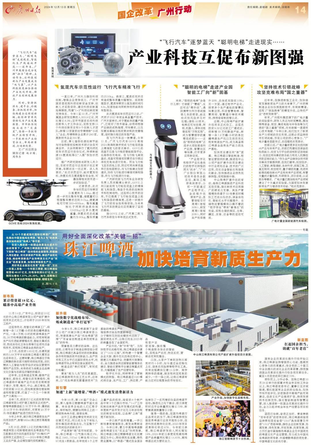“飞行汽车”逐梦蓝天,“聪明电梯”走进现实,智能化生产线遍地开花……近年来,广州市属国企充分发挥“担当”精神,主动作为,让科技创新与产业发展成为“双飞翼”,以产业科技深度融合推动产业优化升级,释放产业创新发展活力。