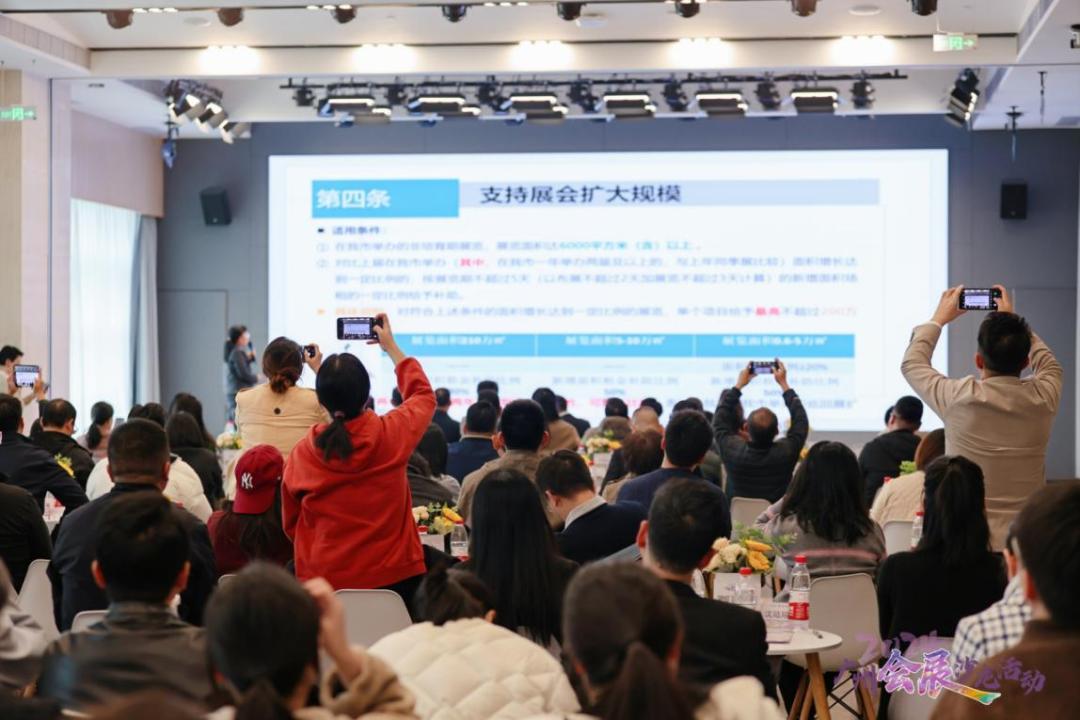 会上,市公安局出入境管理支队一级警长周蕊详细讲解了国家相关政策和广州市口岸签证办理流程,帮助会展企业用好用足政策。市商务局有关负责人提到,若干措施鼓励展会国际化发展,不仅对我市举办的国际展会每届给予最高10万元奖励,还鼓励企业出海办展,对符合条件的境外自主办展,奖励资金最高达50万元。在新政策的加持下,2025年境外观众有望再创新高。
