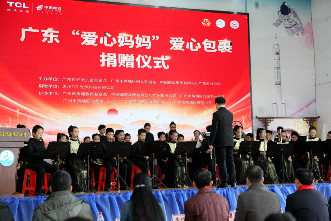 随着悠扬的音乐响起,九龙第二小学管乐团的演奏为仪式拉开序幕。广东省妇女儿童基金会副秘书长郑思琳首先致辞,对TCL光伏科技的捐赠表示感谢,并强调这一善举不仅传递了社会对孩子们的深切关怀,更彰显了企业对乡村振兴和教育事业的坚定支持。她鼓励孩子们努力学习,积极向上,用实际行动回报社会的关爱。