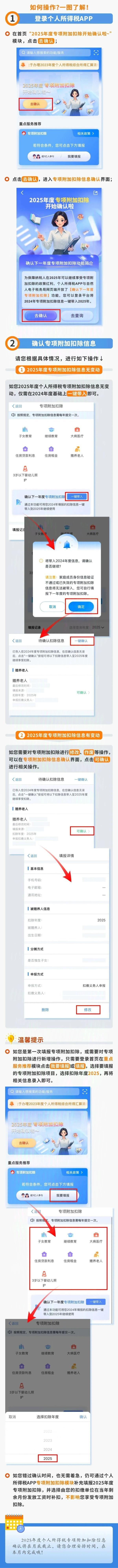 2025年度个人所得税专项附加扣除信息确认已于12月1日开始,将于12月31日截止。距离截止时间还有一周,纳税人需抓紧确认。那么,用于减免个税的项目都有哪些?按照什么标准扣除?该如何操作?一起来了解↓↓↓