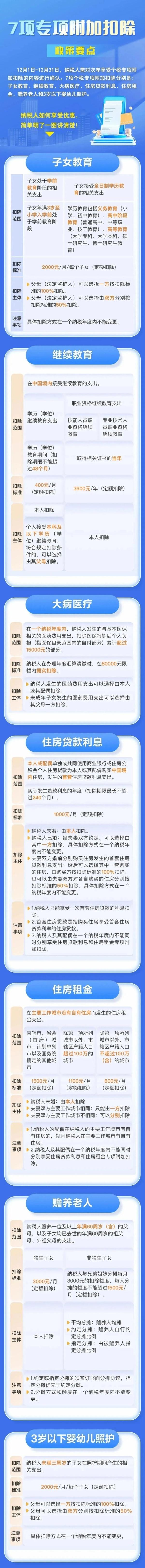 个人所得税专项附加扣除的额度不是直接扣除税款,而是居民个人收入当中应纳税的额度个税专项附加扣除共七项,包括:子女教育、继续教育、大病医疗、住房贷款利息、住房租金、赡养老人、3岁以下婴幼儿照护。