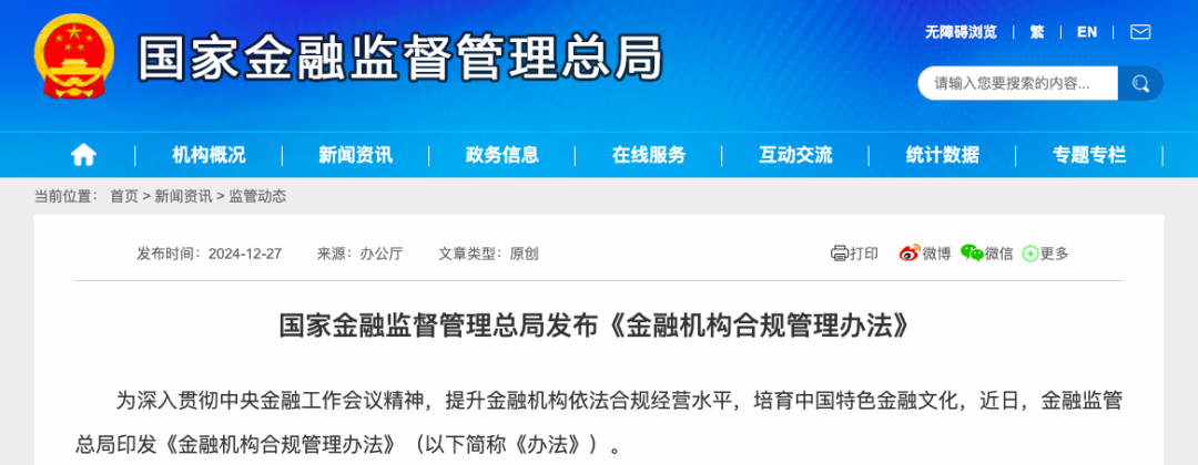 近日,金融监管总局发布了《金融机构合规管理办法》(以下简称《办法》),将自2025年3月1日起施行。《办法》致力于指导金融机构建立横向到边、纵向到底的合规管理体系,将合规基因注入金融机构发展决策、业务经营的全过程、全领域,实现从“被动监管遵循”向“主动合规治理”的转变。《办法》要求金融机构合规履职从高层做起,培育合规文化,提高全体员工合规意识,营造不敢违规、不能违规、不想违规的合规氛围,有效保障高质量发展。