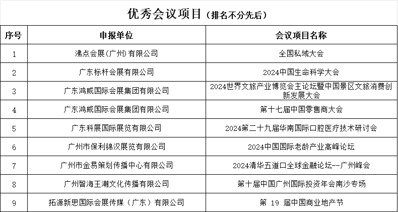 为树立广州市会展业品牌及企业发展标杆,进一步激发行业的积极性和创造力,擦亮广州市“国际会展之都”的名片,在上级主管部门的指导下,协会以客观数据为依据,兼顾社会效益与企业发展等实际情况,开展“2024年度广州国际会议展览业协会评优表彰活动”。据悉,本届活动有来自省内外会展企业及项目100多个参评项参与评选,评选工作坚持“自愿、公平、公正、公开”的原则,评选经过参评企业申报、资格初审、评委会评审等多个环节,评选出行业中的佼佼者。