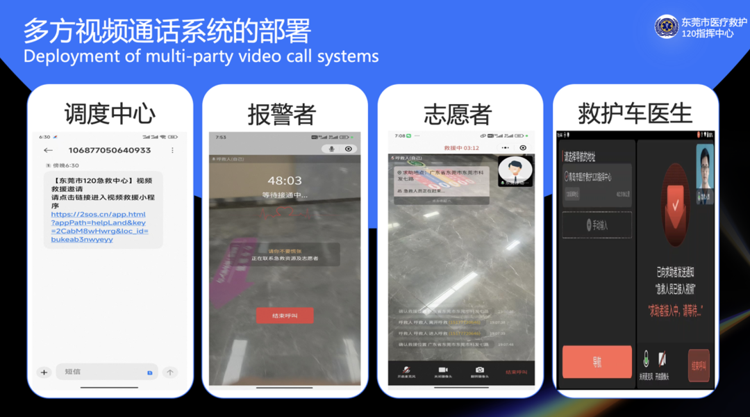 根据工作流程,当地医院接到120中心的出车安排后,报警者的手机会接到一条短信,报警者点击短信内的链接,就可接入与120急救网络的多方视频通话。目前,东莞市有70家120急救分站,3个急救驿站,东莞市109辆120入网救护车均安装了腾讯多方视频通话系统。