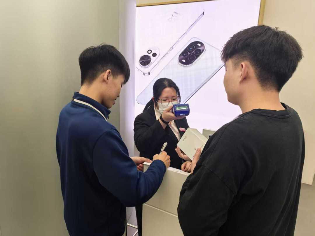 位于北京路的华为智能生活馆·新大新店人头攒动,市民郑先生兴奋地说:“我一直关注着新出的这款华为Mate 70,红枫原色影像让我很动心。原本就打算近期入手,正好赶上了‘国补’政策。”据介绍,郑先生看中的这款华为Mate 70根据政策至高能享受500元的补贴,他直呼 “太划算了”。在云闪付APP粤焕新领取了手机换新补贴后,市民郑先生即刻以优惠价购入新机。
