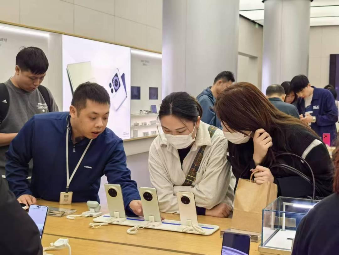 1月20日,广州的消费者终于等来期待已久的新春购物福利。今日,国家对手机、平板电脑和智能手表等数码产品的补贴政策正式上线。今日18点,广州市家电数码以旧换新补贴正式上线。记者走访华为广州线下门店时看到,门店内已经有不少消费者在挑选数码产品。
