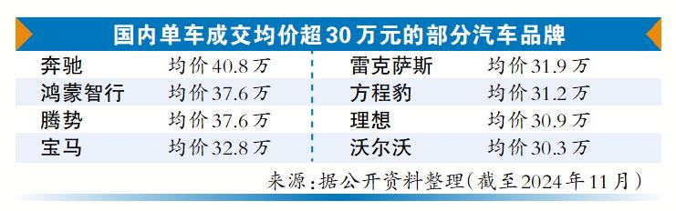 越来越多中国品牌正在通过拔高产品定价,实现更好的品牌溢价。公开数据显示,极氪的车型平均售价在30万元左右;有华为标签的鸿蒙智行近日披露,旗下车型成交均价在去年年末已逼近40万元(去年11月为37.9万元)。相较而言,BBA的客单成交价却在持续下滑。截至去年年底,特斯拉的成交均价为27.2万元,奥迪的成交均价为26.8万元。