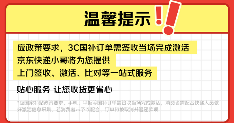 值得注意的是,根据国家补贴政策要求,手机等数码产品购新补贴需要现场拆盒激活。京东快递小哥在送货上门时,会协助消费者快速完成现场激活验收,确保消费者能够便捷地享受到补贴带来的实惠。今年春节期间,京东物流连续第13年“春节也送货”,即便是大年初一也能正常下单收货。