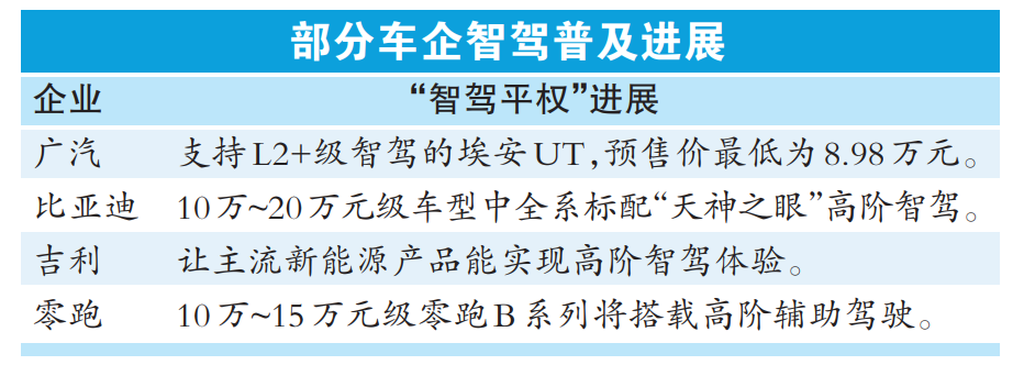 此前,也已经有广汽埃安、小鹏、吉利、理想、零跑等汽车品牌提出了“智驾平权”相关计划,2025年将成为“全民智驾”元年。
