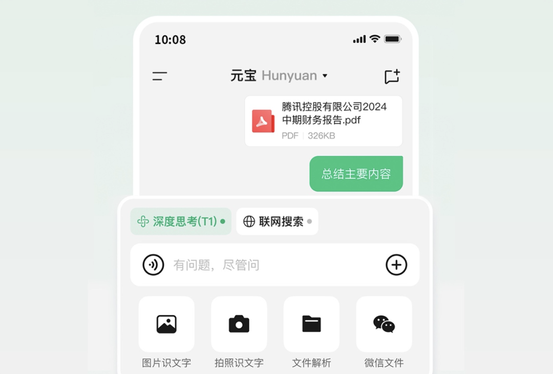 此次更新后,除DeepSeek-R1满血版外,腾讯自研的混元T1深度思考模型也在腾讯元宝开启小范围灰测,用户可以自行选用不同模型解决复杂问题。