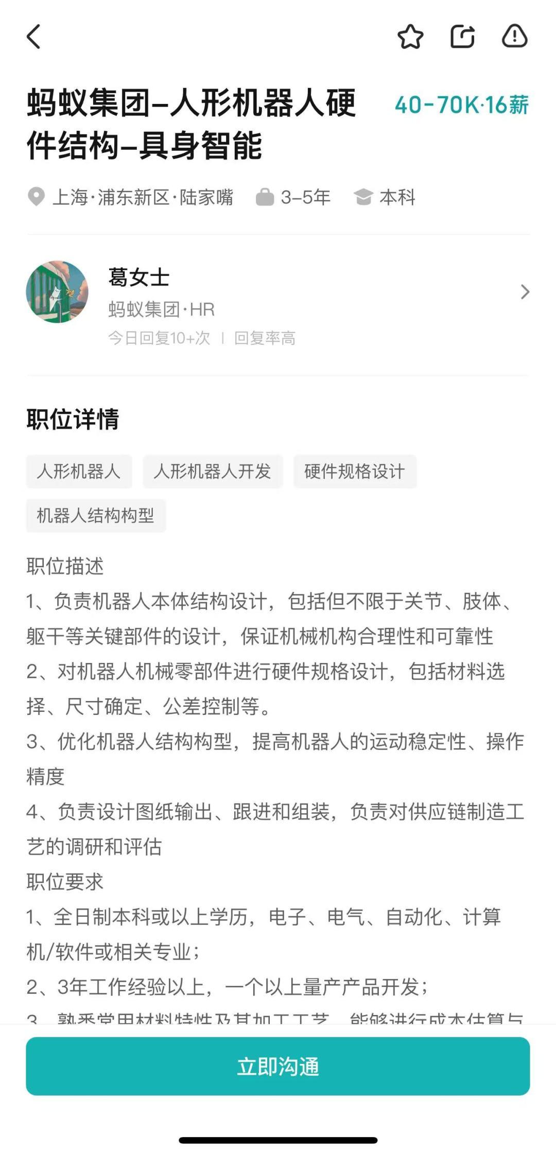 2月19日消息,蚂蚁集团在招聘平台开放了多个具身智能方向岗位。记者在招聘平台上看到,岗位包括算法工程师、人形机器人硬件结构、仿真系统开发工程师、人形机器人运动控制等等。市场消息透露,相关招聘主体为上海蚂蚁灵波科技有限公司。