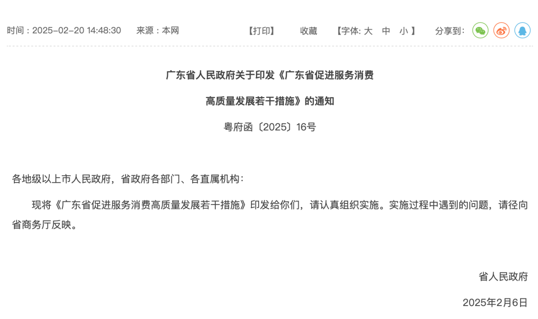 2月20日,广东省人民政府印发《广东省促进服务消费高质量发展若干措施》,从六个方面提出23条举措,创新多元化消费融合场景,优化服务消费市场供给,加快培育服务消费新增长点,有效扩大服务消费,更好满足人民群众个性化、多样化、品质化服务消费需求,为经济高质量发展提供有力支撑。