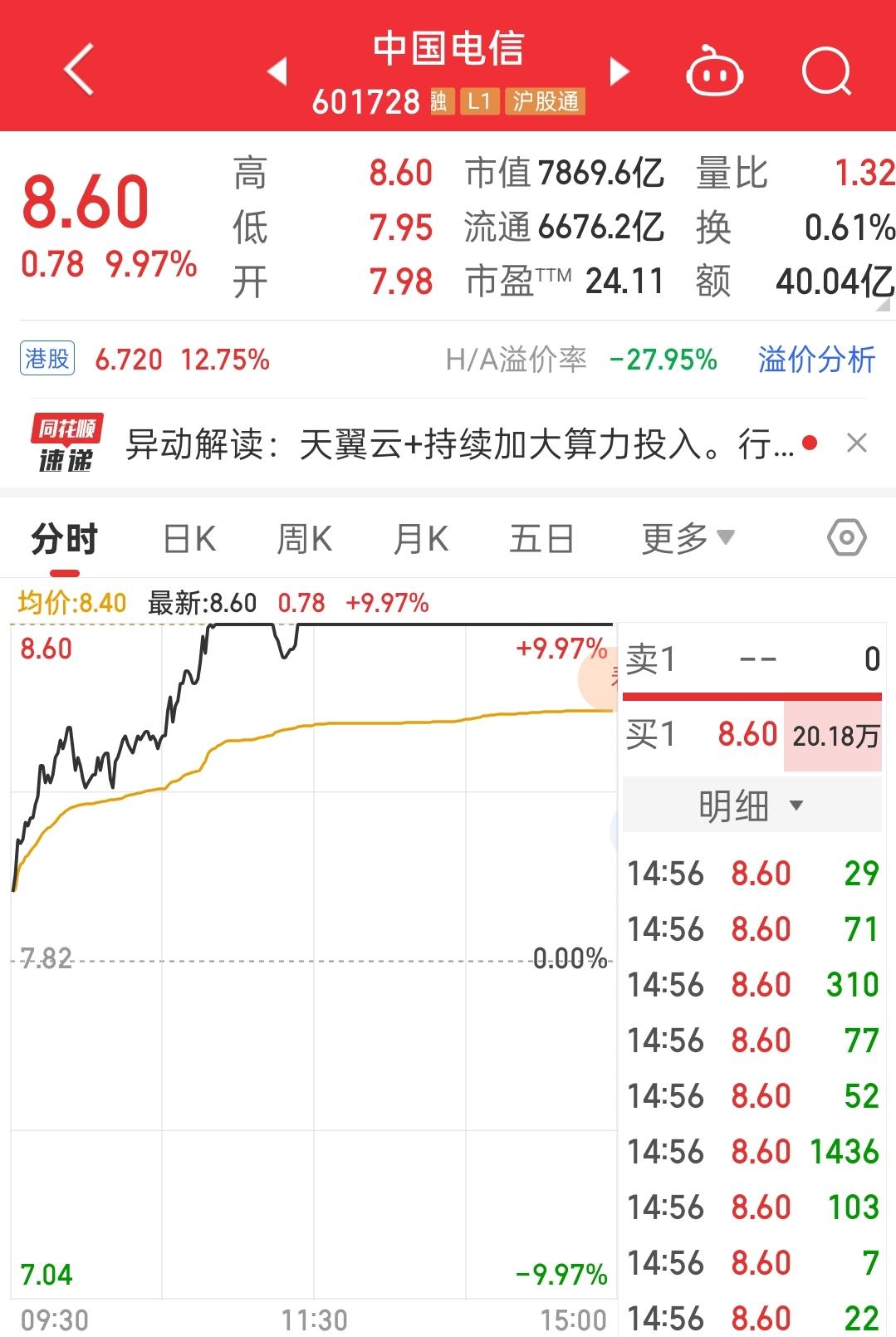 2月21日,三大电信运营商表现亮眼,其中中国联通、中国电信股价纷纷涨停;中国移动盘中一度涨超5%。