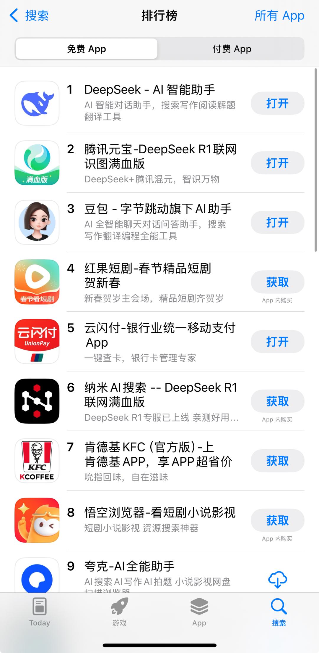 2月23日,记者留意到,根据App Store商店显示,元宝超越豆包升至中国区苹果免费APP下载排行榜第二,DeepSeek继续位居榜首。连日来,腾讯系相继宣布旗下多款产品包括元宝、微信、腾讯文档、QQ浏览器、QQ音乐、企业微信等产品均已接入DeepSeek。