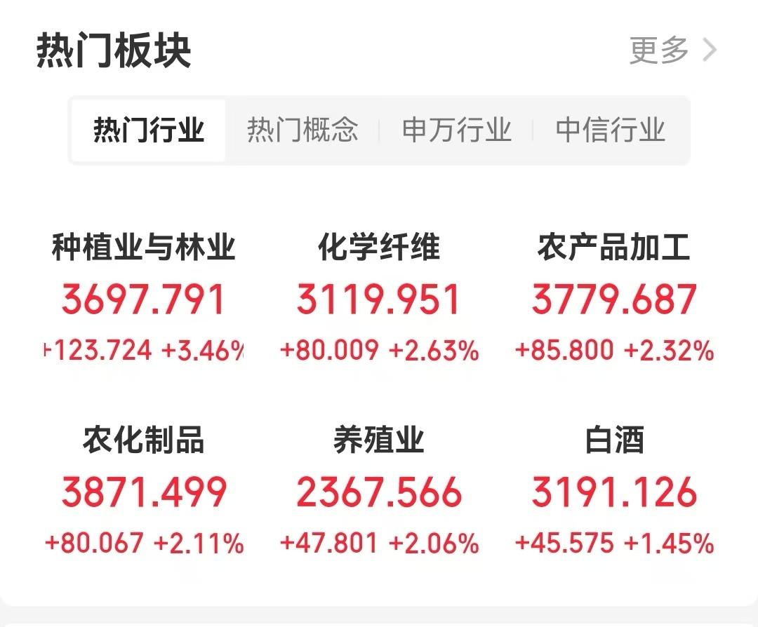 东莞证券称,文件提出要继续推进生物育种产业化。今年是我国种业振兴行动正式开展的第五年。未来将持续加大种源关键核心技术攻关和生物育种产业化的落地。深入实施种业振兴,一方面可以使我国的粮食安全得到有效保障,另一方面可以有效地提高我国粮食研发的综合竞争力。此外,文件提出要推进农业科技力量协同攻关,以科技创新引领先进生产要素集聚,因地制宜发展农业新质生产力。从市场表现来看,该研报指出,当前农业板块整体估值处于历史低位,在政策的推动下,有望迎来超跌反弹。