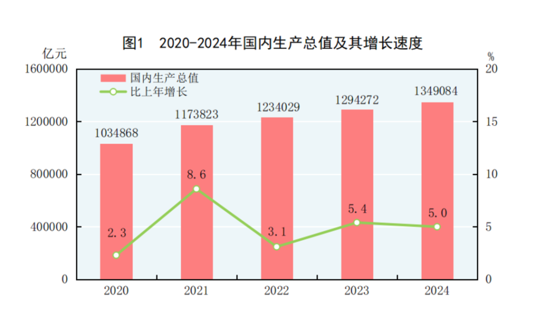 国家统计局表示,2024年是中华人民共和国成立75周年,是实现“十四五”规划目标任务的关键一年。面对外部压力加大、内部困难增多的复杂严峻形势,各地区各部门全面贯彻落实党的二十大和二十届二中、三中全会精神,按照党中央、国务院决策部署,坚持稳中求进工作总基调,完整准确全面贯彻新发展理念,加快构建新发展格局,着力推动高质量发展,全面深化改革开放,加大宏观调控力度,经济运行总体平稳、稳中有进,高质量发展扎实推进,新质生产力稳步发展,改革开放持续深化,重点领域风险化解有序有效,民生保障扎实有力,中国式现代化迈出新的坚实步伐。