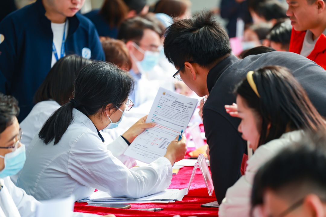 义诊现场,来自医院产前诊断中心、分子医学中心、生殖医学中心、新生儿筛查中心等科室的医生为群众答疑并帮助部分怀疑患上罕见病者进行诊断指引。