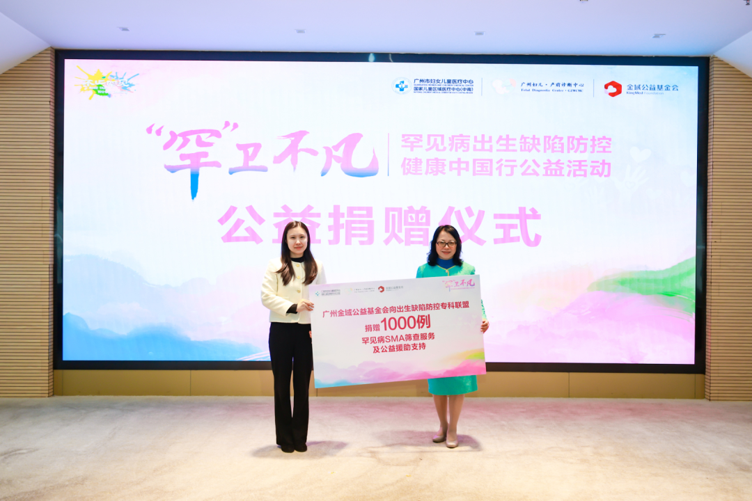 当天,广州金域公益基金会向出生缺陷防控专科联盟捐赠价值超35万元的脊髓性肌萎缩症(SMA)公益包,有1000个家庭可免费获赠SMA筛查服务,若夫妻双方SMA筛查结果均为携带者,且孕妇需要进行产前诊断、家庭经济条件有限的,还可获得一次性的2000元资金补助。