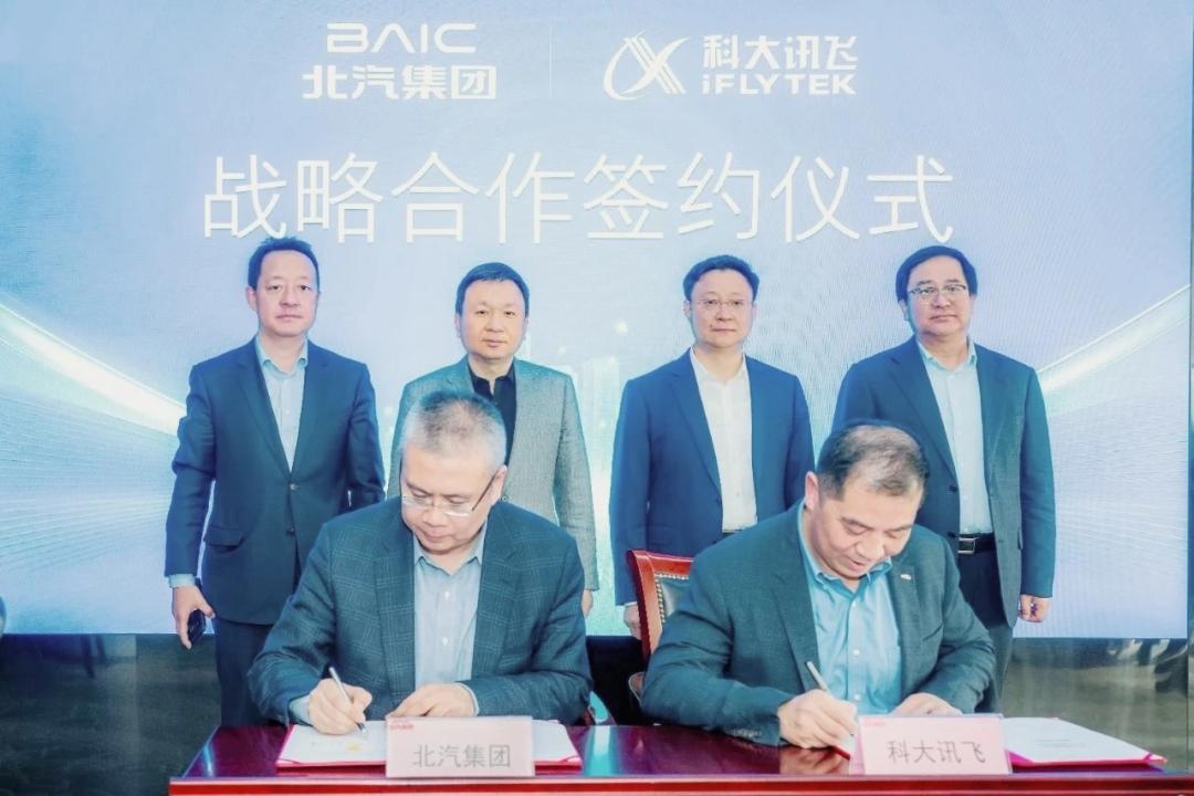 3月1日,科大讯飞董事长刘庆峰一行到访北汽集团,与北汽集团党委书记、董事长张建勇进行座谈交流,随后科大讯飞与北汽集团签署战略合作框架协议,双方将共同推动汽车智能化领域的全方位战略合作,依托先进的人工智能技术和大模型能力,全面提升智能网联汽车的研发水平以及企业数智化创新服务能力,通过技术创新引领未来出行方式的变革。