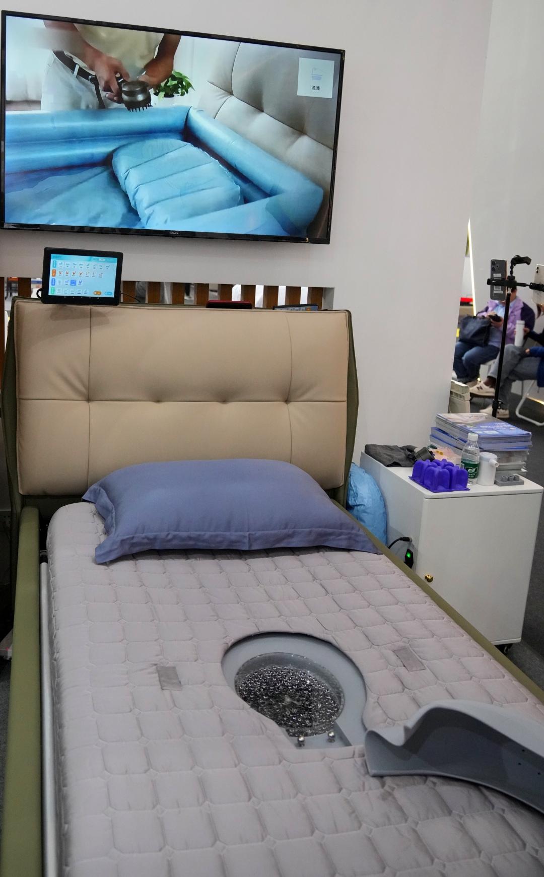在居家社区养老展区,一款智能大小便护理床,被不少客商与观众围观。来自广东佛山的展商招先生告诉记者,随着居家养老的需求增加,公司团队的目光也从国外市场重新投射在国内市场上。据透露,目前在江浙一带的接受度和关注度都比较高。