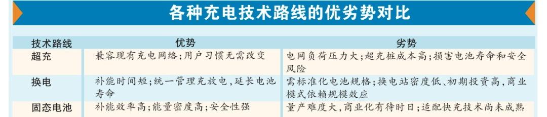 更多业内人士认为,新能源车的充能短期内将是“超充主攻城市补能,换电服务特定场景”的状况;持续突破快充、超充的上限,仍是主流路线之一。彭鹏表示,从用户的角度来说,使用传统充电桩充电无须改变用户习惯,也兼容现有充电网络,因此“闪充”的大规模普及是可以期待的。