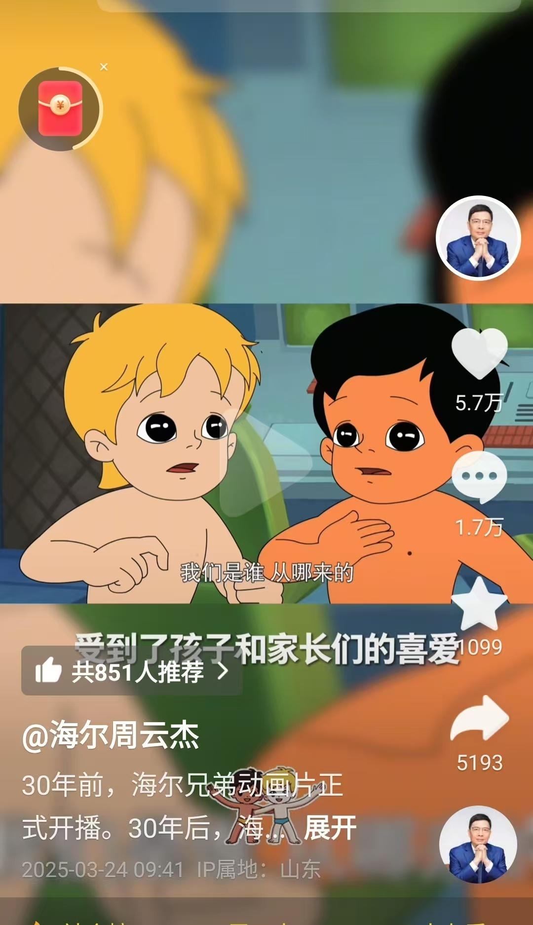 今日上午,海尔周云杰账号又更新了一条视频,介绍了广大网友关心的《海尔兄弟》续集怎么拍。周云杰称,关于续集还是想延续科普冒险的题材风格,还会邀请网友们一起参与共创。