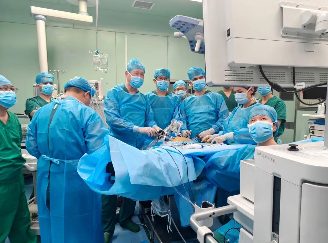 手术中,三大科室配合紧密:麻醉科赵年章主任采用精准的全身麻醉全程护航患者生命体征;钟文主任先行腹腔镜微创操作,精细分离膀胱及粘连的组织、离断双侧输尿管和尿道;印贤琴主任随即进行子宫切除术,巧妙避开盆腔血管密集区清扫淋巴结。