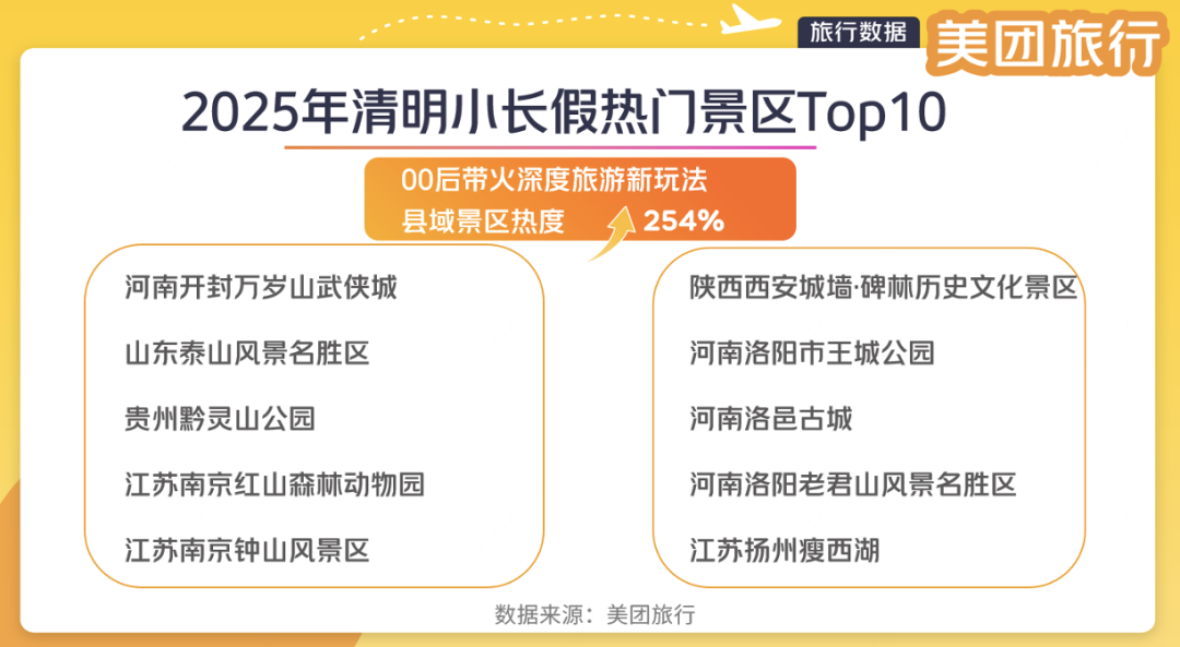 以“县”为名,更多年轻人搜索县城酒店、县城景区、县城赏花游,追寻原汁原味的差异化旅游玩法,开启深度旅游新体验。美团旅行数据显示,2025年4月3日至4月5日,全国县域五星酒店热度同比上涨近35%,县域景区热度上涨超254%。数据显示,清明小长假,最爱搜索县域旅游的客源地主要是天津、汉中、成都、深圳、上海。