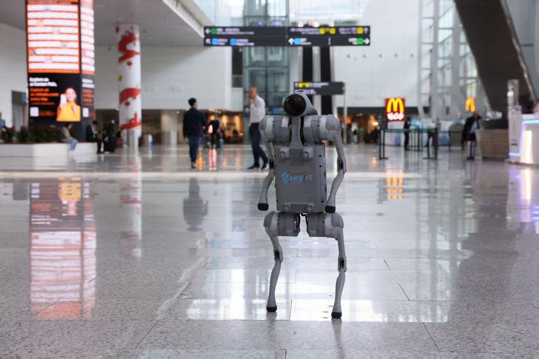 在白云国际机场国际到达区出口,科技感满满的“广货优品 广贸全球”AI Robot主题展示区迎接来自全球的客人。第一期(4月12日-19日)聚焦智能设备、电子设备与新能源科技三大领域,展示产品包括翻腾表演的机器狗、飘香四溢的炒菜机器人、便携式储能电池包,向全球采购商近距离展示“广州智造”硬实力,开展当天已成功吸引来自中东、非洲、巴西、美国等地区的跨国采购商莅临洽谈,帮助企业开拓国际市场,促进“展品”变“商品”,“流量”变“销量”的实效转化。