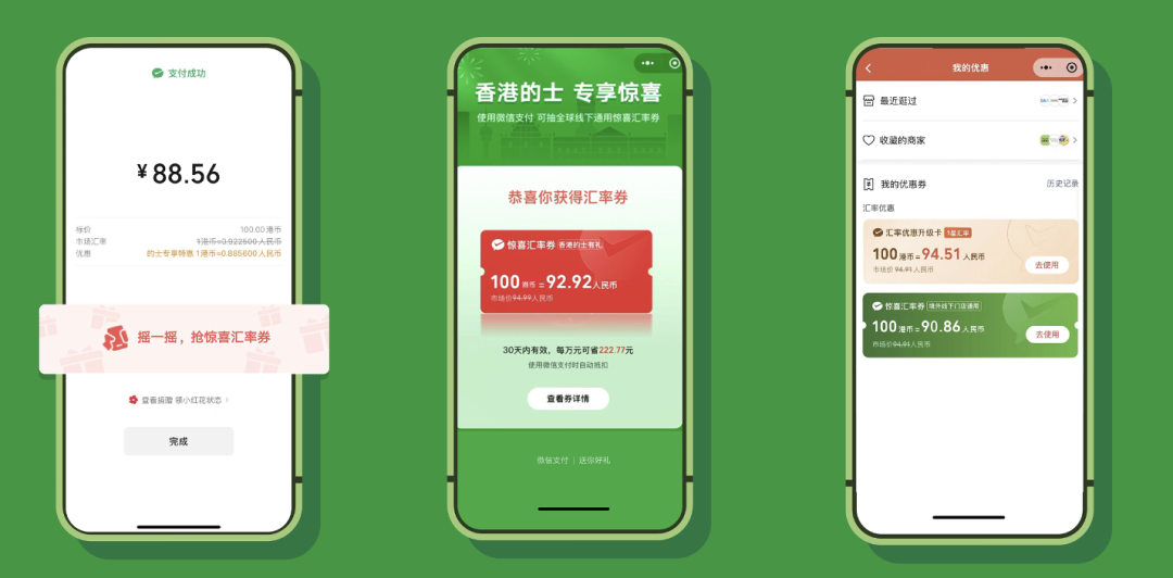 为深化大湾区跨境支付互联互通建设,优化赴港游客出行体验,4月15日,微信支付进一步升级香港的士微信“收钱码”产品体验,内地访港用户使用微信支付完成的士车费结算后,即可“摇一摇”领取全球线下通用惊喜汇率优惠券。