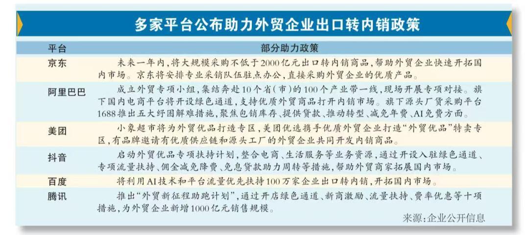 近一段时间,京东、阿里、盒马、拼多多、百度、美团、东方甄选、苏宁易购、抖音等电商平台纷纷宣布将扶持外贸企业“出口转内销”,大力开拓国内市场。