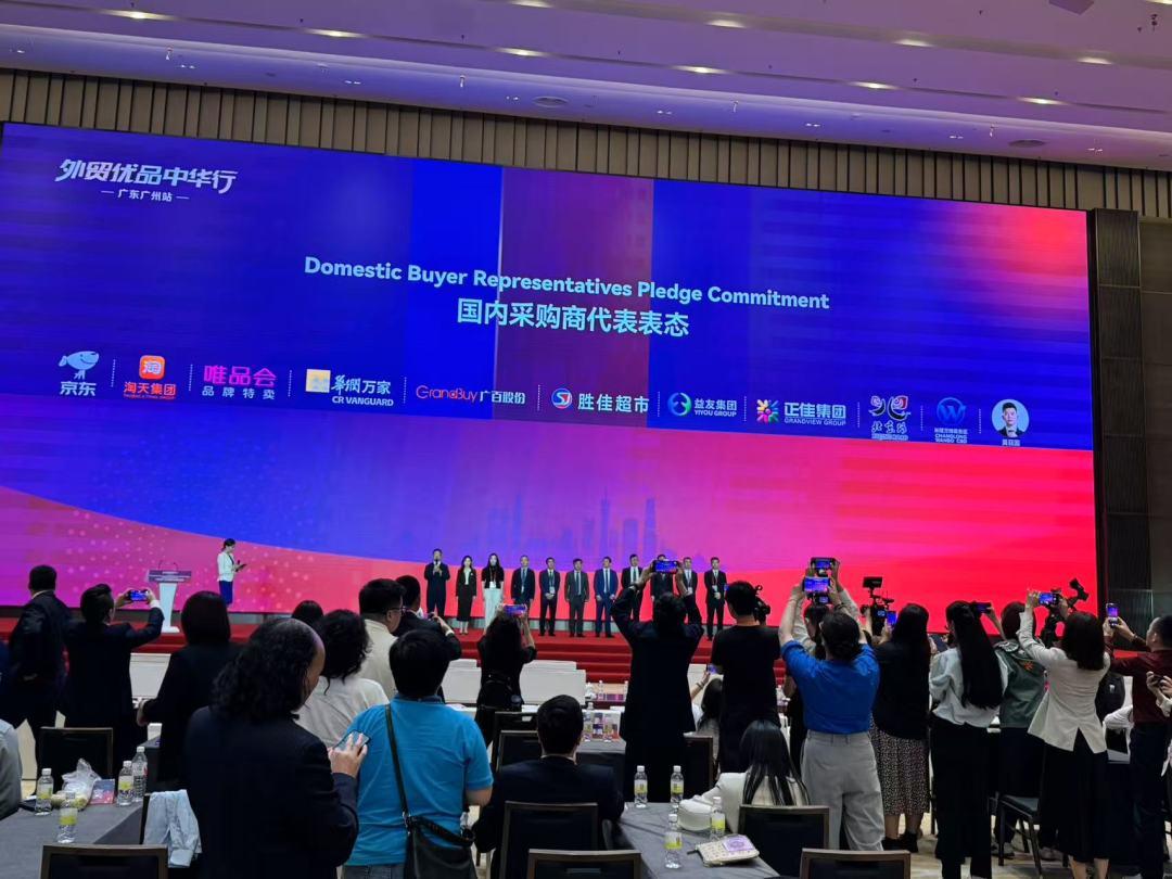 现场,京东、淘天集团、唯品会、华润万家、广百股份、胜佳超市、益友集团、正佳集团、北京路、长隆万博集团商务区等商家代表纷纷发布了助力外贸企业供需对接宣言。“今天我们跟深圳狂响科技、广东省纺织品进出口股份有限公司两家企业进行了合作意向签约。首批合作商品,外贸出口服装及优质小家电(含蓝牙音响等产品)4月19日在华润万家龙岗布吉万象汇店率先上市。”华润万家华南大区办公室刘俊燕表示,早前,公司已成立由董事长为组长的助力外贸企业转内销工作专班,专班通过商品部门统筹四大渠道资源,建立分大区、分渠道的快速响应机制,为合作企业开辟直通车通道等。截至目前,华润万家已成功对接超百家外贸企业,产品涵盖竹木制品、冷冻水产等8大品类。