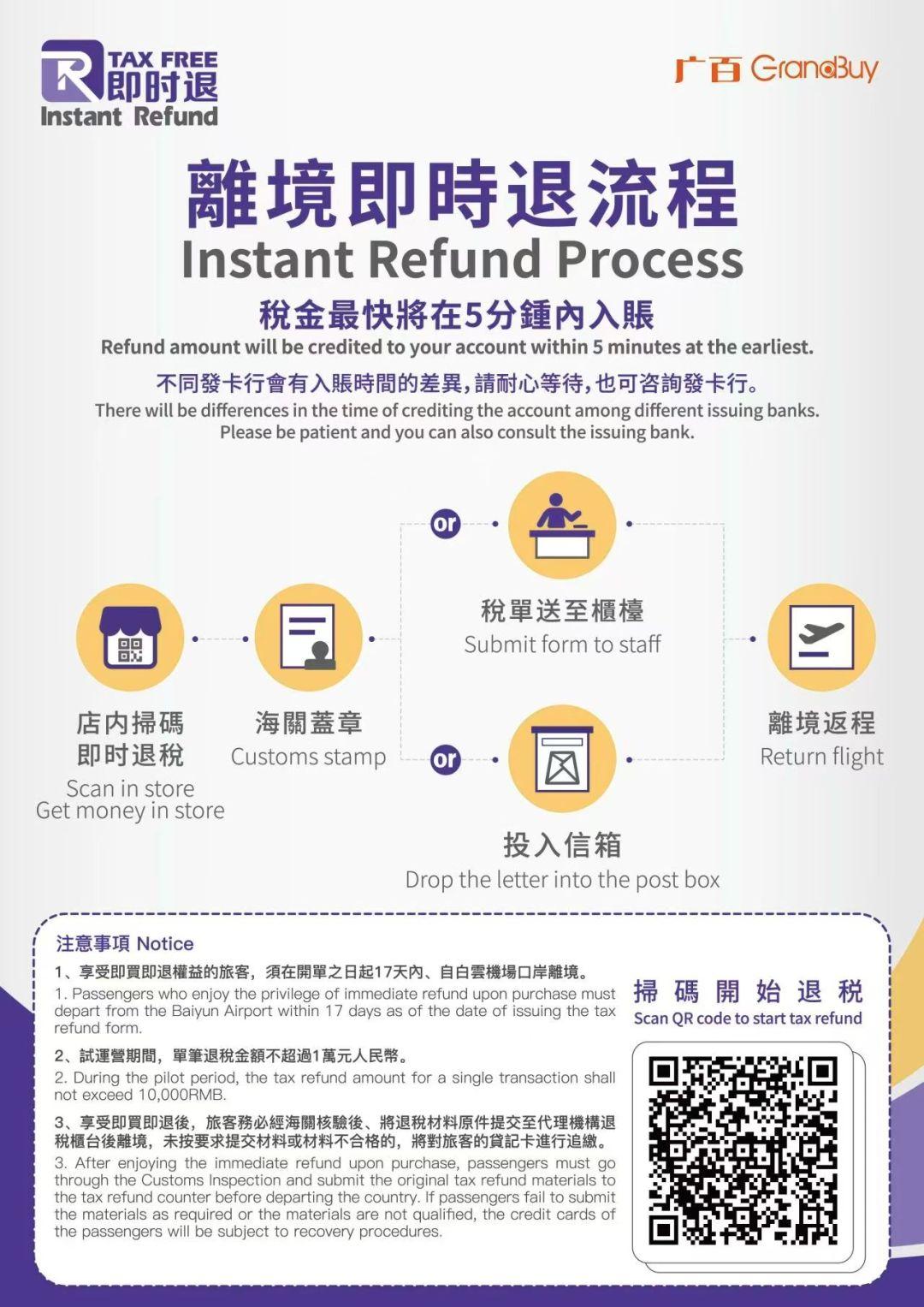 广州太古汇商场率先在第137届广交会开幕首日上线离境退税商店“即买即退”线上一站式服务,25家品牌商户参与,入境旅客在太古汇参与商户购买了心仪商品后,直接在门店内使用个人手机上传相关信息与凭证,即可一站式完成退税流程,退税金最快5分钟直达账户,实现“购物即享退税”的无缝衔接,极大地提升了离境购物退税便捷度。广百、友谊等10家“即买即退”服务试点商店也正陆续上线“线上自助”退税模式,为境外旅客提供更多退税方式选择。据了解,4月15日广交会开幕11天以来,广州市离境退税日均开单量创历史新高,较去年同期增加1.68倍。