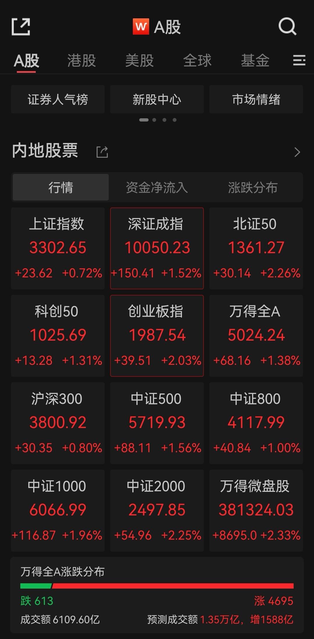 5月6日,A股市场高开。截至10:24左右,上证指数涨0.72%,站上3300点;创业板指拉升涨逾2%,深成指涨1.52%,整个A股市场近4700只股票上涨。