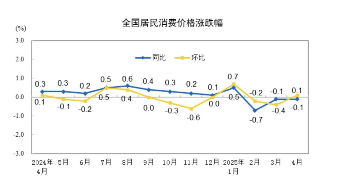 5月10日,国家统计局公布的最新物价数据显示,4月份,居民消费价格指数(CPI)环比由降转涨,由上月下降0.4%转为上涨0.1%;同比下降0.1%。核心CPI环比上涨0.2%,同比上涨0.5%。工业生产者出厂价格指数(PPI)同比、环比分别下降2.7%、0.4%,部分工业行业价格走势稳中向好,呈现出一定的积极变化。