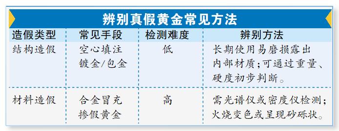 记者梳理发现,当前黄金造假的主要方式集中在结构造假、材料造假两种。