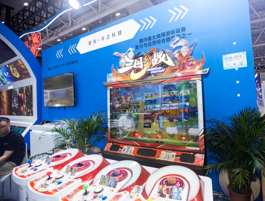 当广州馆内又响起了一阵阵游戏技能释放的音效,大家知道,馆内的各种游戏互动体验又“火”起来了。记者注意在,在本届文博会上,广州馆最受欢迎的区域依旧是游戏电竞展区。这里邀请了一批游戏领域的知名企业入驻并展示各类游戏,而过往青年纷纷体验起各自不同端口的游戏。其中,广州华立科技股份有限公司将其《三国幻战》街机带到展区,吸引了不少年轻人试玩。